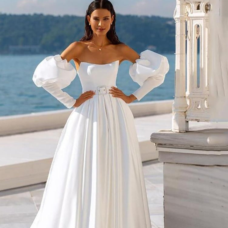 The Robe Harlee is a beautiful choice for an unforgettable wedding. Boasting a sophisticated white colour, this bridal dress features a cape for an elegant and charming twist. Crafted from luxurious fabric and designed for ultimate comfort, this gown will make you look and feel like the star of your special day.