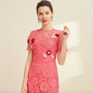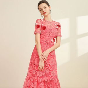 Indulge in luxury with the Robe Helene. This Floral Crochet Midi Dress exudes elegance and sophistication. Crafted with intricate crochet details, it is perfect for any occasion. Make a stylish statement with this timeless piece.