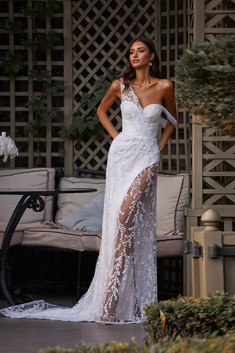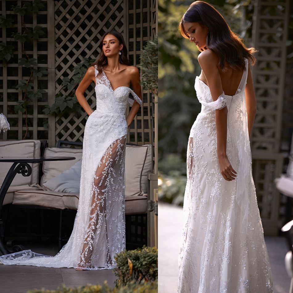 The Robe Iliya brings luxury to any special event. Crafted with exquisite lace appliques and a deep V-neckline, this custom-made bridal gown will make you feel like a modern-day princess. The backless design and mermaid silhouette provide a timeless and graceful silhouette. The sweeping train adds a touch of elegance to this beautiful dress.