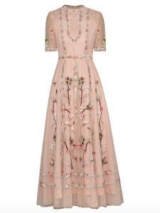 Introducing Robe Imaan, the perfect summer dress for women. Made with high-quality material, this vintage style dress features short sleeves and delicate embroidered mesh, providing a flattering and comfortable fit. Upgrade your wardrobe with Robe Imaan.
