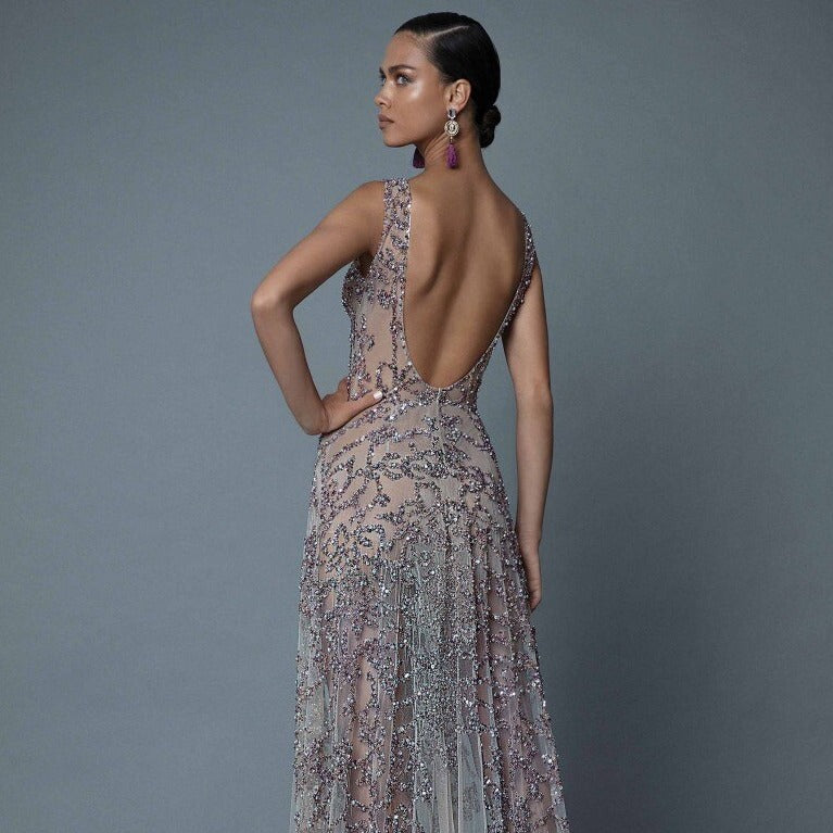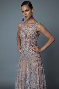 Introducing the Robe Jamila, a gown of sheer elegance. Every detail is carefully crafted with delicate crystals and sparkling accents that will make you feel like royalty. Guaranteed to make a lasting impression for any special occasion. Make a statement and shine in the Robe Jamila!