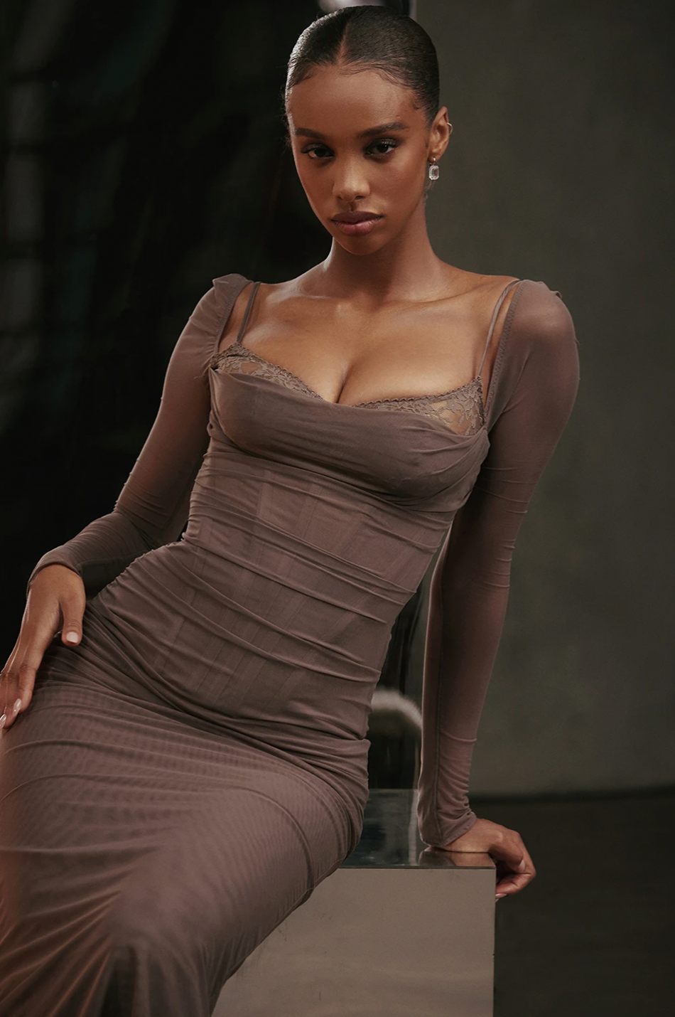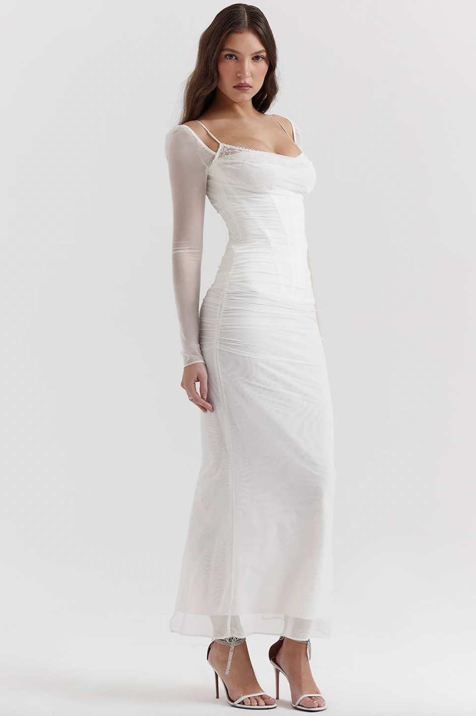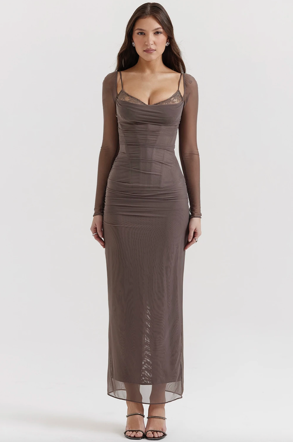 Experience ultimate luxury and elegance with our Robe Katarina. This show-stopping dress boasts long sleeves, intricate mesh and lace accents, and a double layer design for a sophisticated silhouette. Perfect for autumn gatherings and nights out, this dress will make you stand out and feel like a true fashion icon.