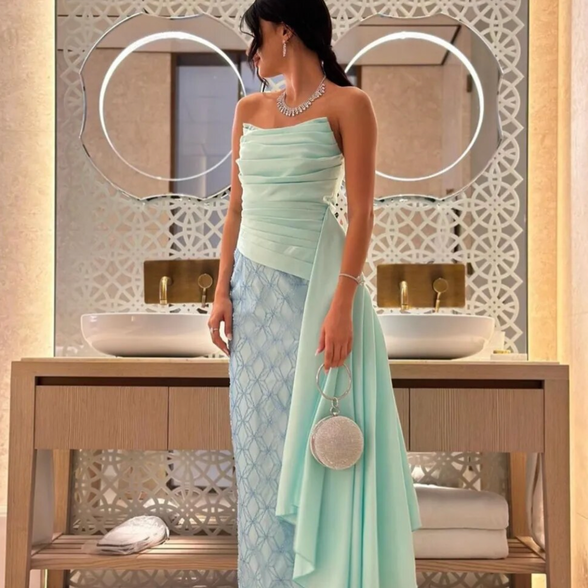 Get ready to turn heads with the Robe Keira! This stunning prom dress combines fashion and elegance with its strapless sheath design and ruched details. Perfect for formal events and parties, its ankle length will make you look and feel like a queen. The ultimate choice for a show-stopping entrance!