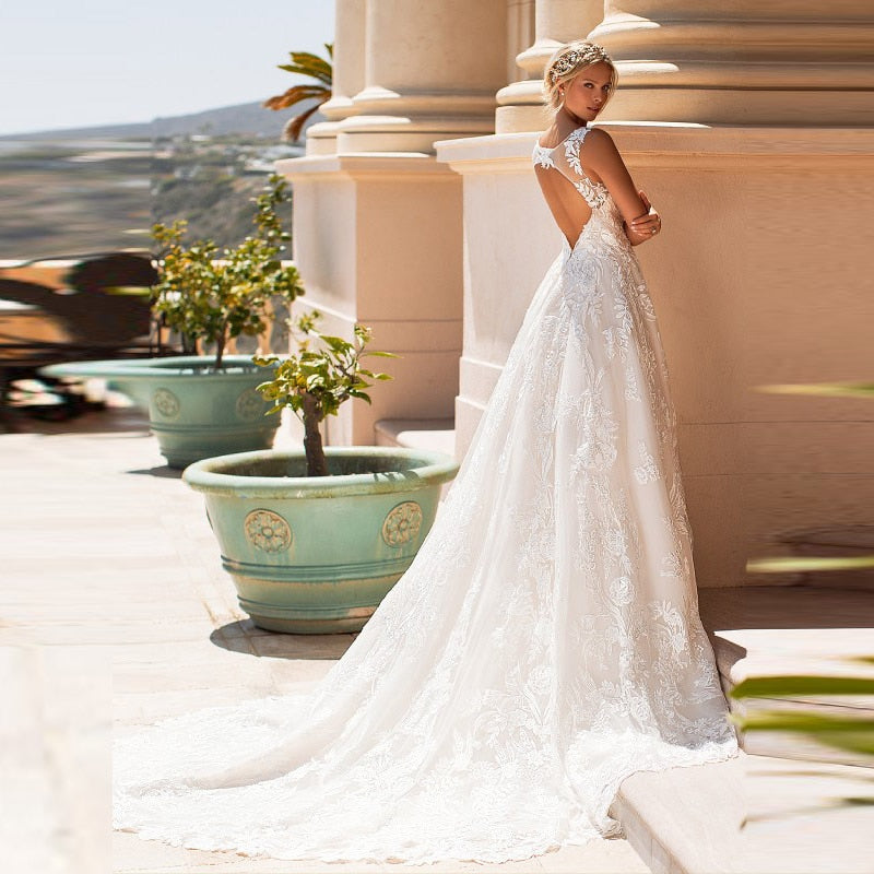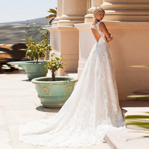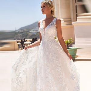 Robe Laiqa offers an exquisite wedding dress designed to make any bride feel special. Handcrafted with delicate appliques, an A-line silhouette, and beautiful lace detailing, this dress is perfect for a romantic, elegant ceremony. The simple church look is perfect for any formal event.