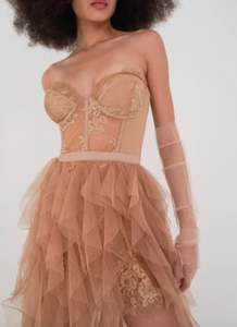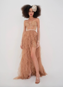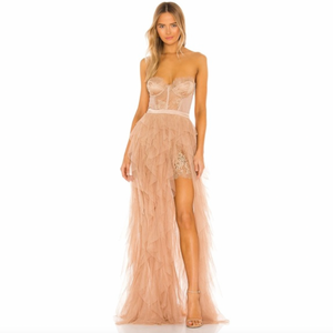Get ready to make a statement at your next event with the Robe Leonisa Bustier Gown. This elegant evening gown is perfect for graduation ceremonies, proms, or any formal occasion. With its luxurious and high-quality design, you'll feel like royalty all night long. Say goodbye to boring dresses and hello to a gown that will turn heads!