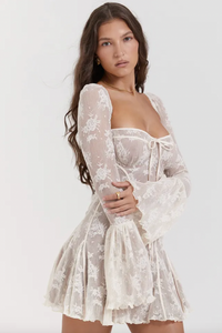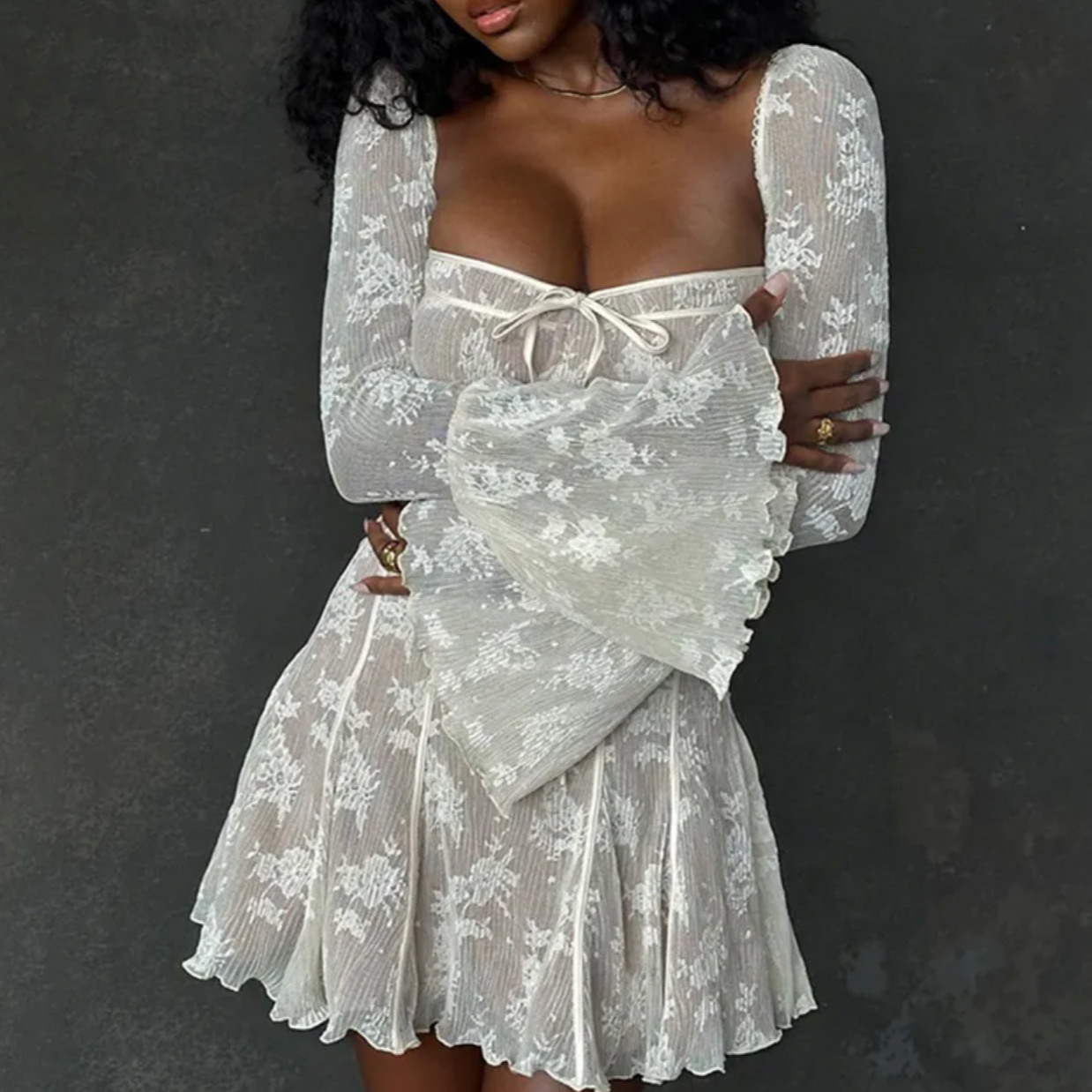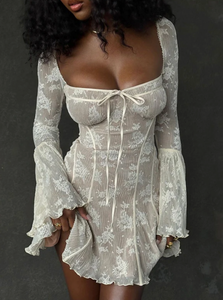 Make an entrance in the Robe Lilijana ladies' dress: crafted from luxe fabric and designed with a figure-flattering square neckline and backless cut. Featuring a unique print and long sleeves, this chic mini dress brings a touch of elegance to any wardrobe.