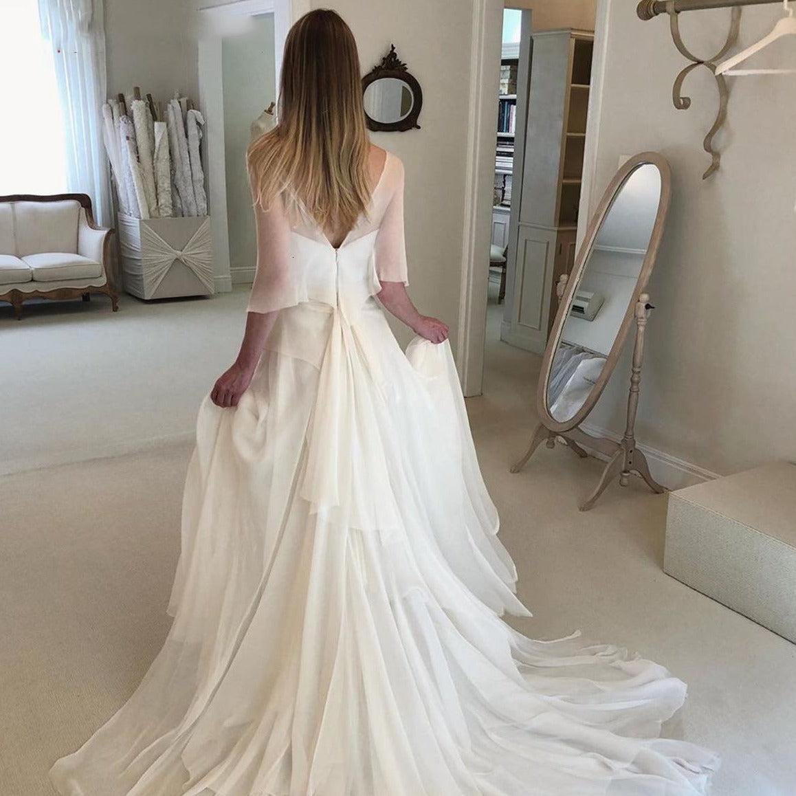 Introducing the Robe Lova, an elegant blanc bridal dress with a chic design. Perfect for the modern bride seeking a sophisticated and stylish look on her special day. Made with high-quality materials, this dress exudes timeless beauty and will make you feel confident and radiant as you walk down the aisle.