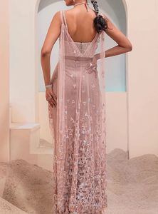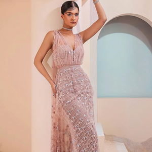 Look flawless at your special occasions wearing our Robe Marcela! This classic, sleeveless chiffon gown is sure to turn heads with its alluring deep V-neck and exquisite appliqués. With its A line design, you'll be sparkling from head to toe for that perfect floor-length look! Be the belle of the ball in this charming evening gown.