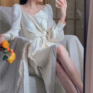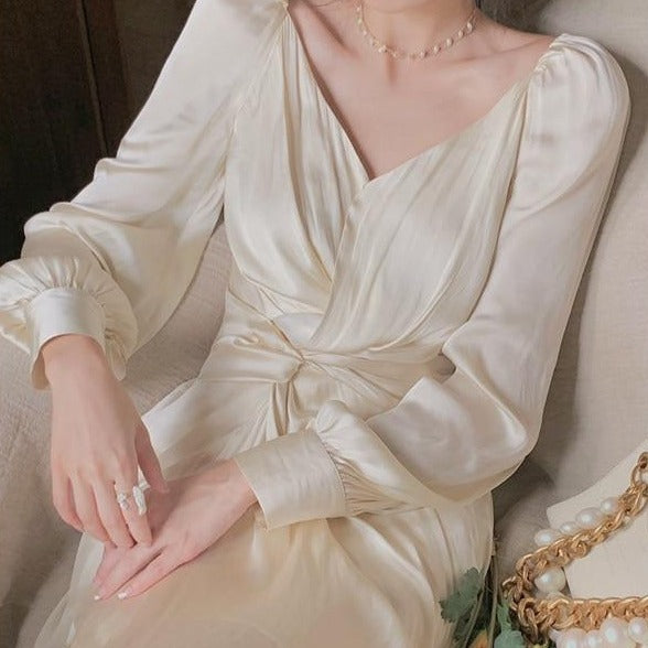 A timeless piece of elegance, the Robe Marchisa is crafted from vintage satin for a luxurious finish. Adorned with an exquisite French touch, this midi dress radiates poise and sophistication. Perfect for any special occasions, this piece is sure to make you stand out.