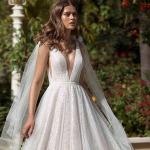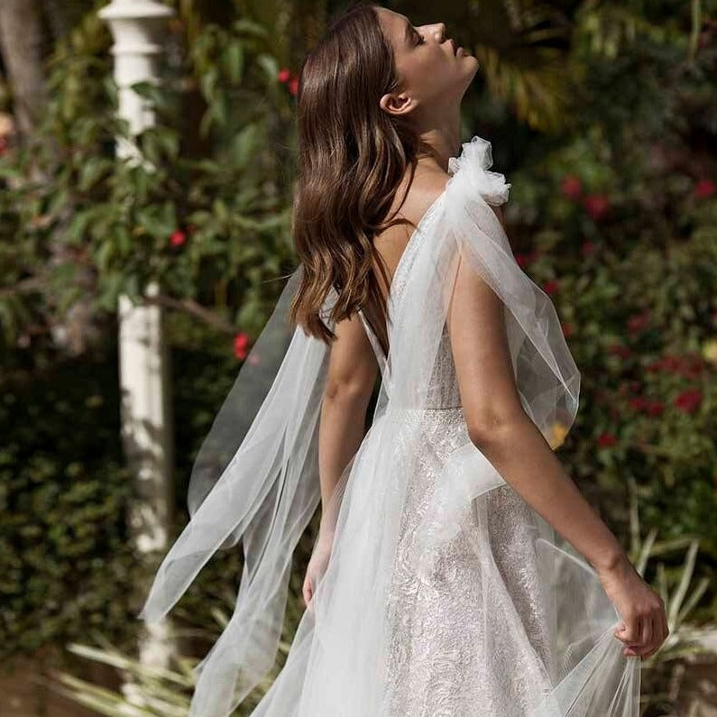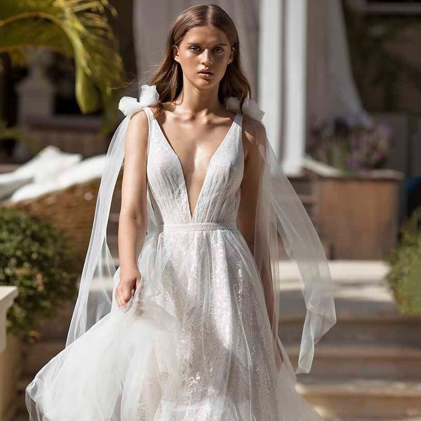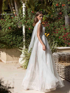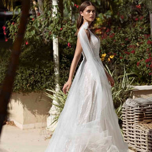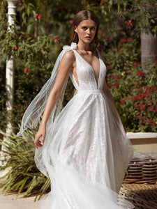 "Get ready to shine on your special day with the Robe Mariette. This beautiful white sparkling dress features v-neckline for a dreamy bridal look. Designed to make you feel confident and radiant, it's the perfect gown for your wedding."