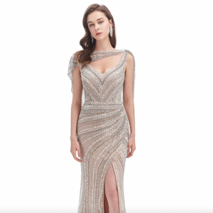 Be bold and stand out from the crowd in Robe Masami's Luxury Heavy Beading Evening Dress. Featuring an elegant mermaid fit and glamorous cape, you'll make a head-turning entrance at weddings, proms or any formal event!