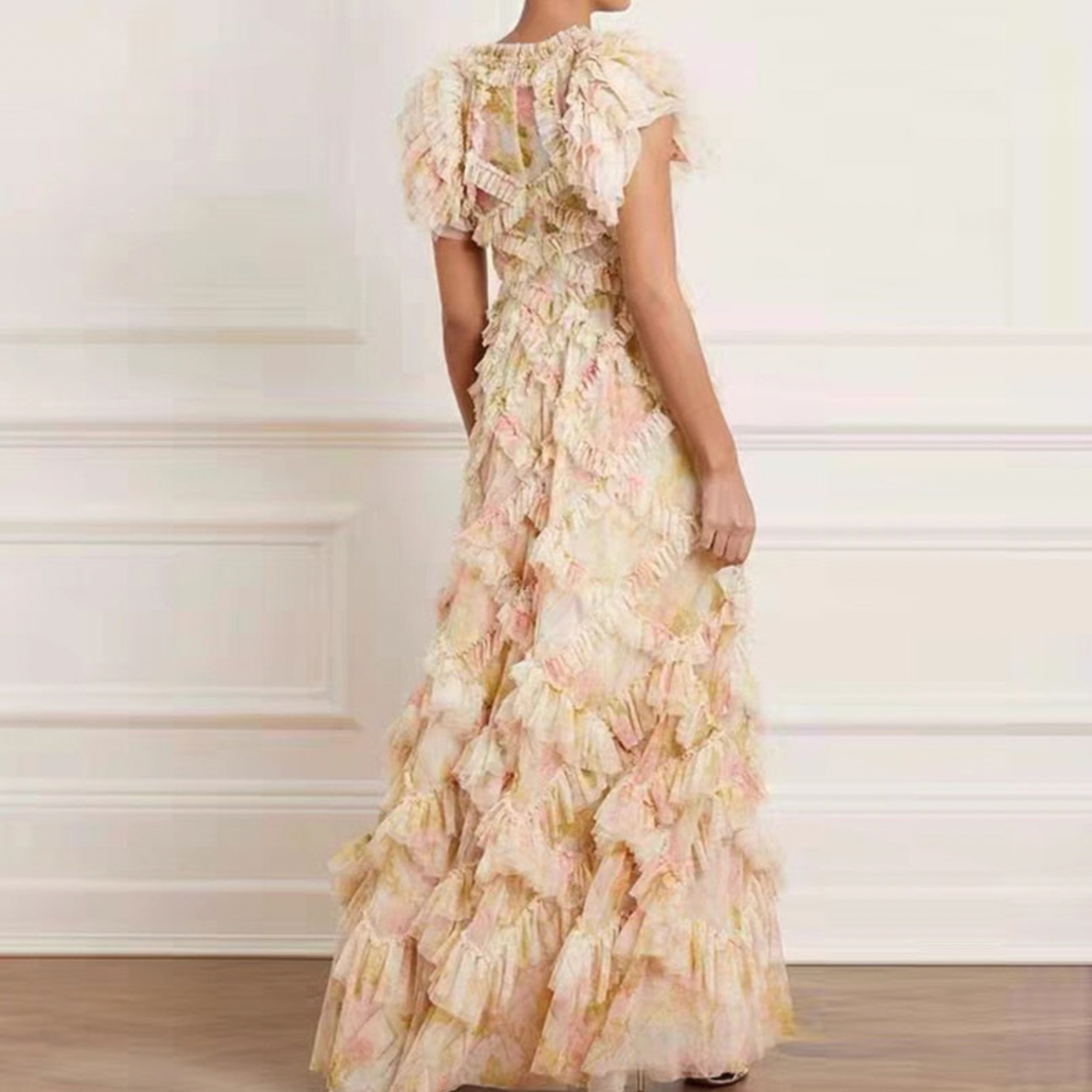 "Unleash your adventurous side with the Robe Noam! Made from high-quality materials, this bohemian-style dress features beautiful floral patterns and playful ruffles. Elevate your fashion game with this bold and daring piece. Order now and be ready to take on any challenge!"