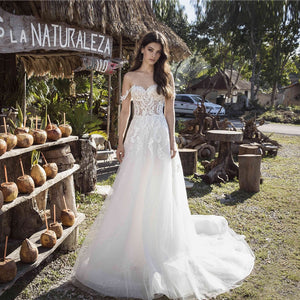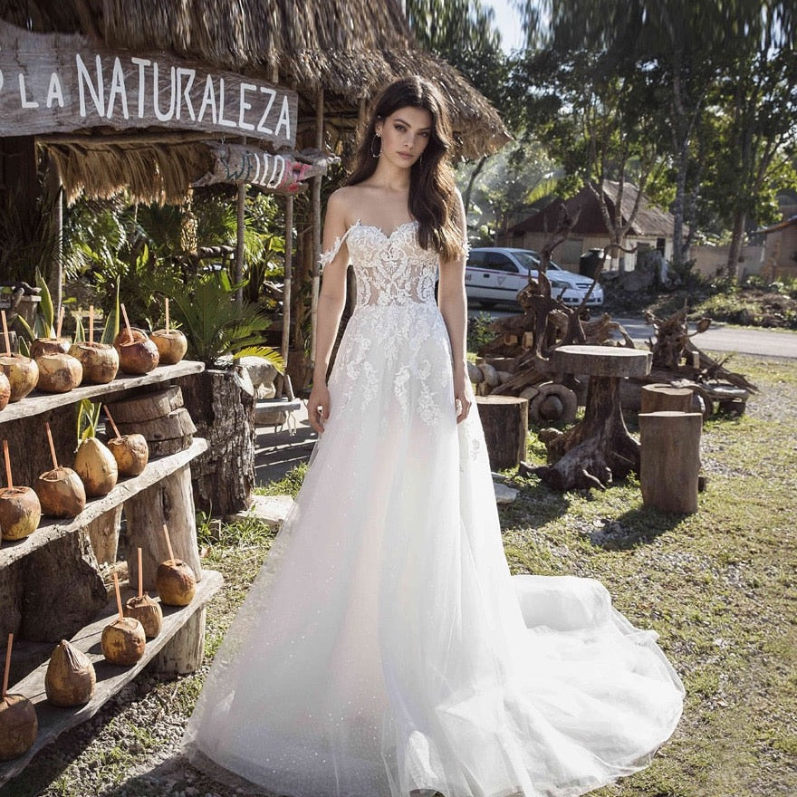 For the bride who desires to make a luxurious statement on her special day, the Robe Obelia is the perfect choice. Delicate, sparkling appliqués adorn this timeless A-line silhouette to create a look that is both elegant and opulent. Make a stunning entrance with the Robe Obelia.