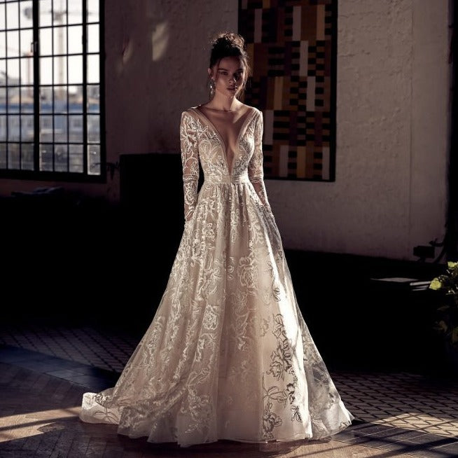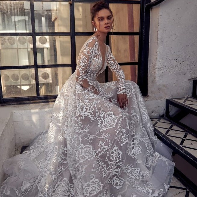 The Robe Orbella is a stunning and sophisticated wedding gown that will make any bride feel like royalty on her special day. Crafted with shimmering fabric, this enchanting gown will capture attention and make you feel truly magical. Elevate your bridal look with the elegance of the Robe Orbella.