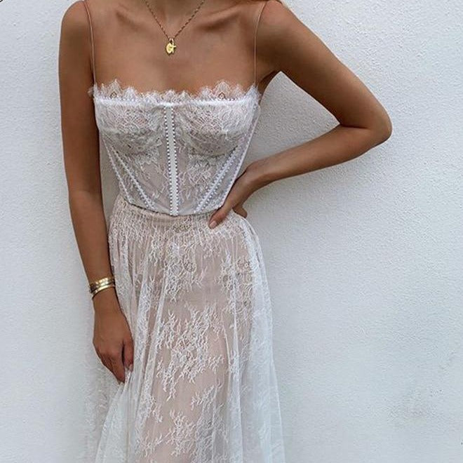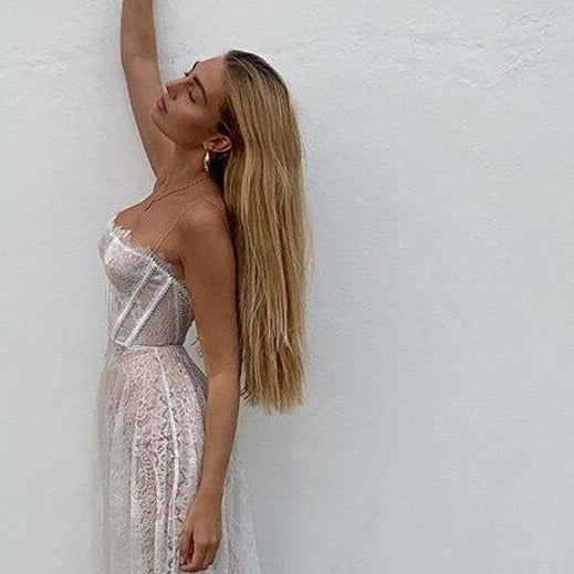 Introducing the Robe Remi, a sophisticated white maxi dress made from luxurious lace embroidered with intricate detailing. Perfect for special occasions, this timeless dress drapes beautifully and promises to make a lasting impression.