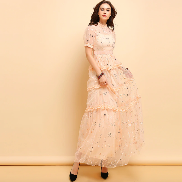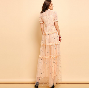 Elevate your style with our Robe Renée. This stunning maxi dress features intricate sparkle lace details and a soft ivory hue, perfect for any occasion. Feel confident and glamorous in this elegant piece that effortlessly combines femininity and sophistication.