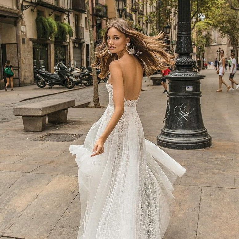 Experience timeless elegance on your special day with the Robe Riley. This beautiful bridal gown features delicate lace that adds a touch of chic to your look. With its classic design and luxurious details, this robe is sure to make you feel confident and radiant as you walk down the aisle.
