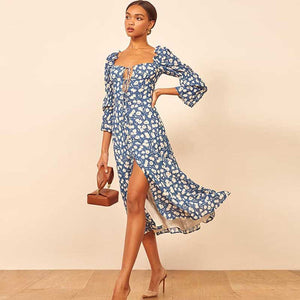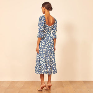 Introducing the one-of-a-kind Robe Roberta from Reformation! This floral dress exudes effortless style and is sure to turn heads. With its unique Reformation Blue design, you'll be the talk of the town. Perfect for any occasion, this dress is a must-have for any fashion-forward individual.