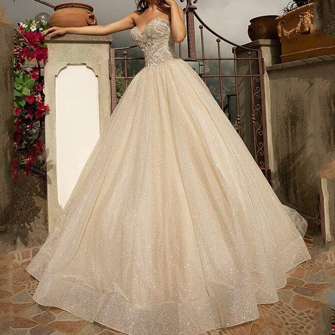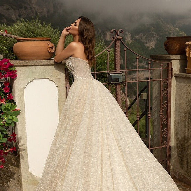 Walk down the aisle in style with Robe Roux! Look beautiful in this bridal length a line dress, perfect for your special day. It's the perfect combination of stylish and sophisticated, so you can turn heads without stealing the show.
