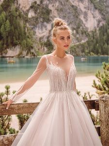 Indulge in elegance and romance with our Robe Serenay! This stunning a-line bridal gown is crafted in crisp white, exuding a timeless beauty that will leave you feeling like a fairytale princess on your special day. Walk down the aisle with confidence and grace in this exquisite piece.