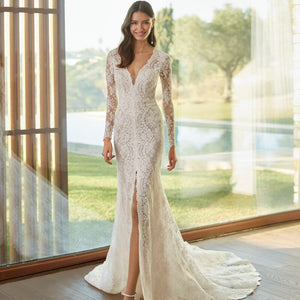 Be the belle of any ball in the Robe Sherlin! The boho-style high-elastic waistline, deep V-neckline and delicate lace sleeves are sure to make an unforgettable impression. Make a bold statement and take your formal look to the next level.