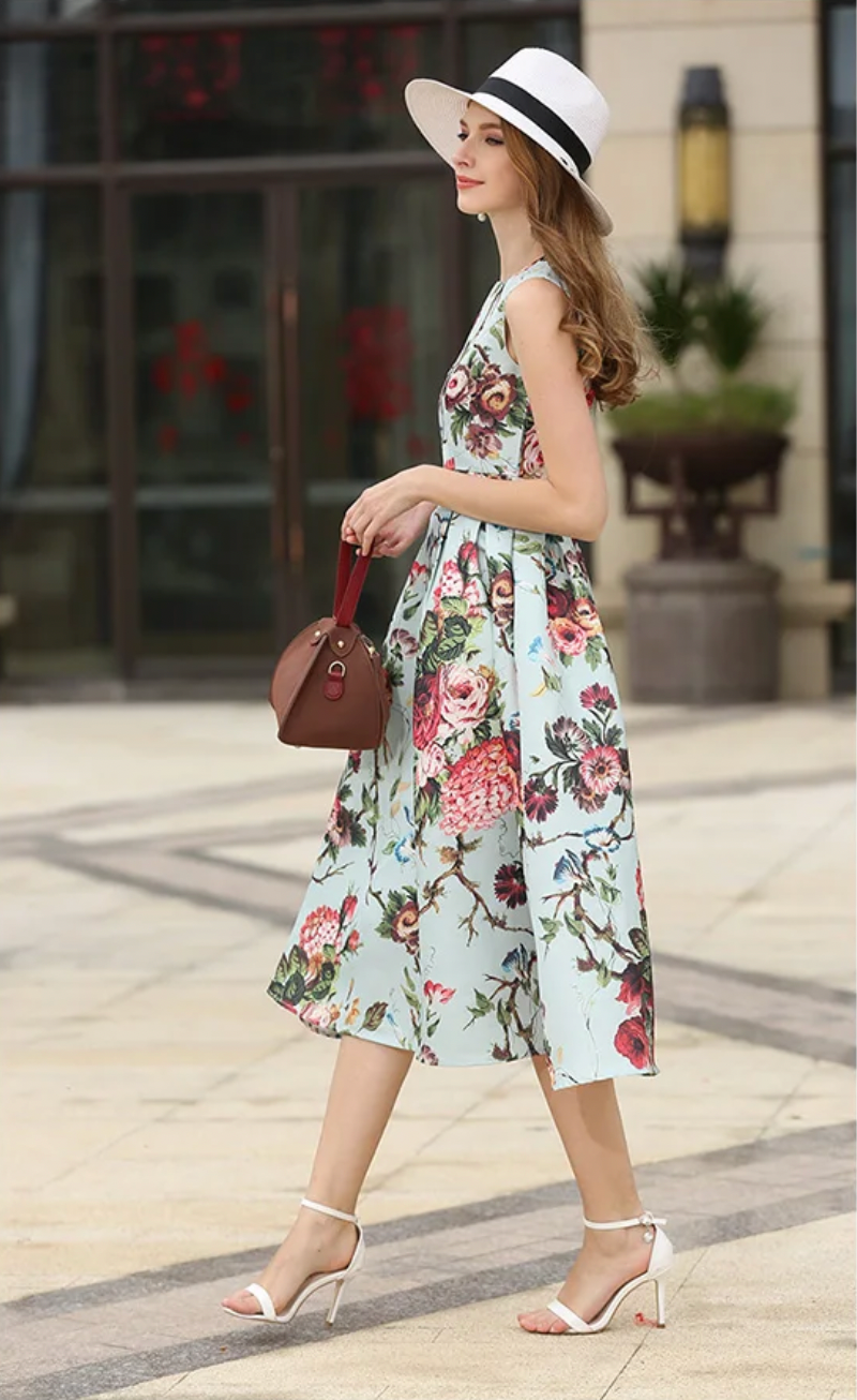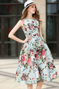 Elevate your summer wardrobe with the Robe Shontelle. This designer, runway-inspired dress features a sleeveless, floral printed design that exudes elegance and style. Perfect for any party or special occasion, the Robe Shontelle is a must-have for any fashionable woman.