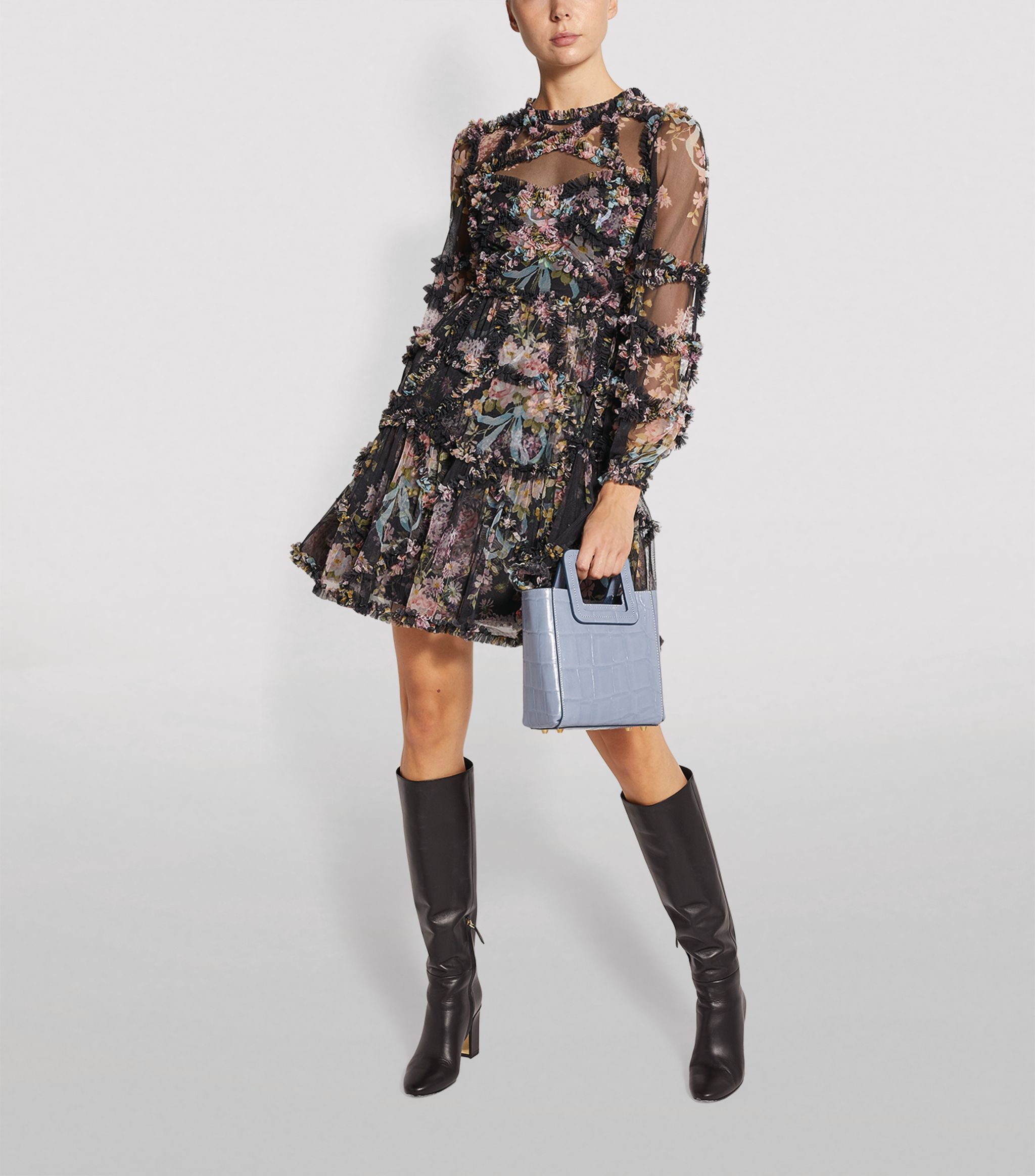 Indulge in the sophistication and exclusivity of the Robe Steffi. This mini dress boasts elegant ruffles that add a touch of drama to any cocktail event. With its luxurious design and high-quality fabrics, this dress is a must-have for any fashion-forward individual. Make a statement and turn heads with the Robe Steffi.