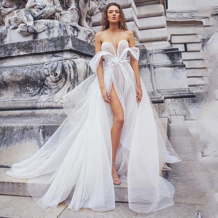 The Robe Théa is the perfect choice for a chic and elegant bride. Made in Paris, this white robe exudes sophistication and adds a touch of Parisian charm to your special day. Take a step towards bridal bliss in this effortlessly stylish piece.