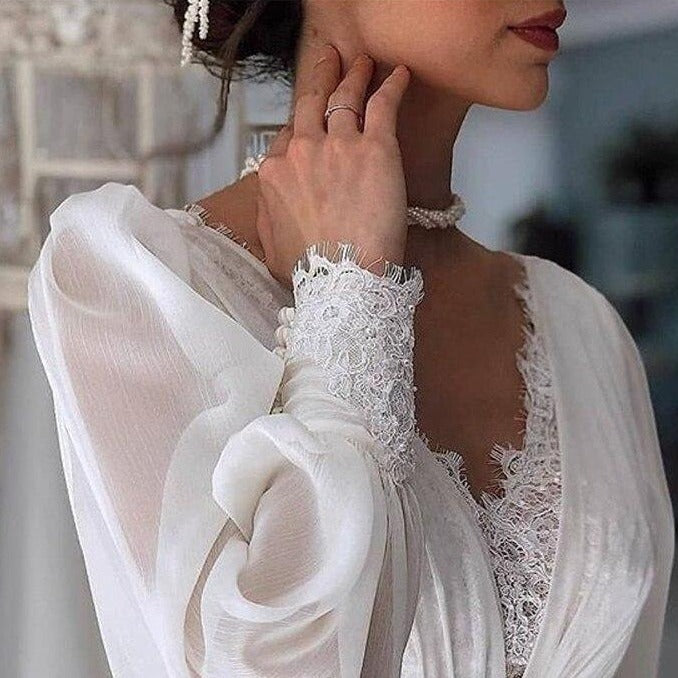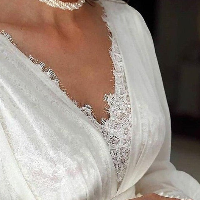 Dress to impress on your big day with the Robe Tiziana. This elegant white lace dress is perfect for any bride looking for a touch of sophistication. With its intricate lace design, it's sure to turn heads as you walk down the aisle. Get ready to say 'I do' in style.