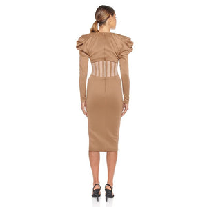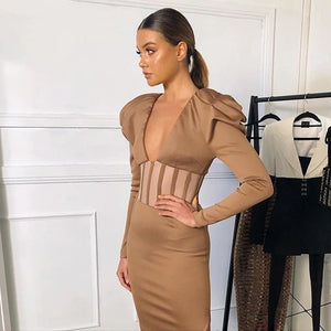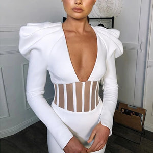 Transform into a bold and daring person with the Robe Vedette! This elegant white dress features puffed sleeves and a sexy plunging V-neck. Perfect for making a statement and standing out in any formal event. Take a risk and rock this stunning mesh maxi dress!