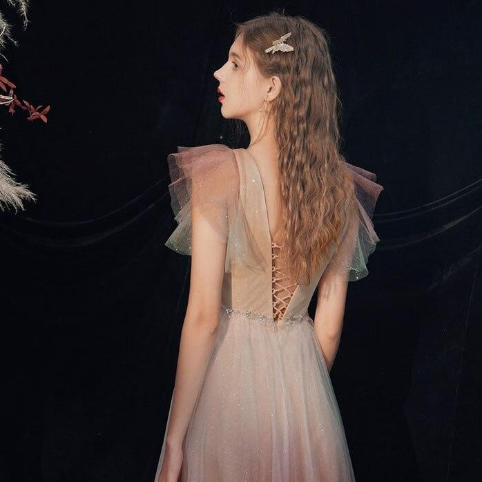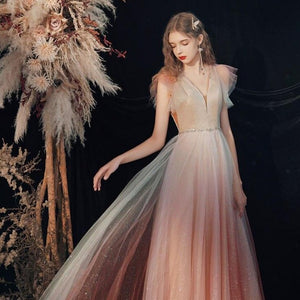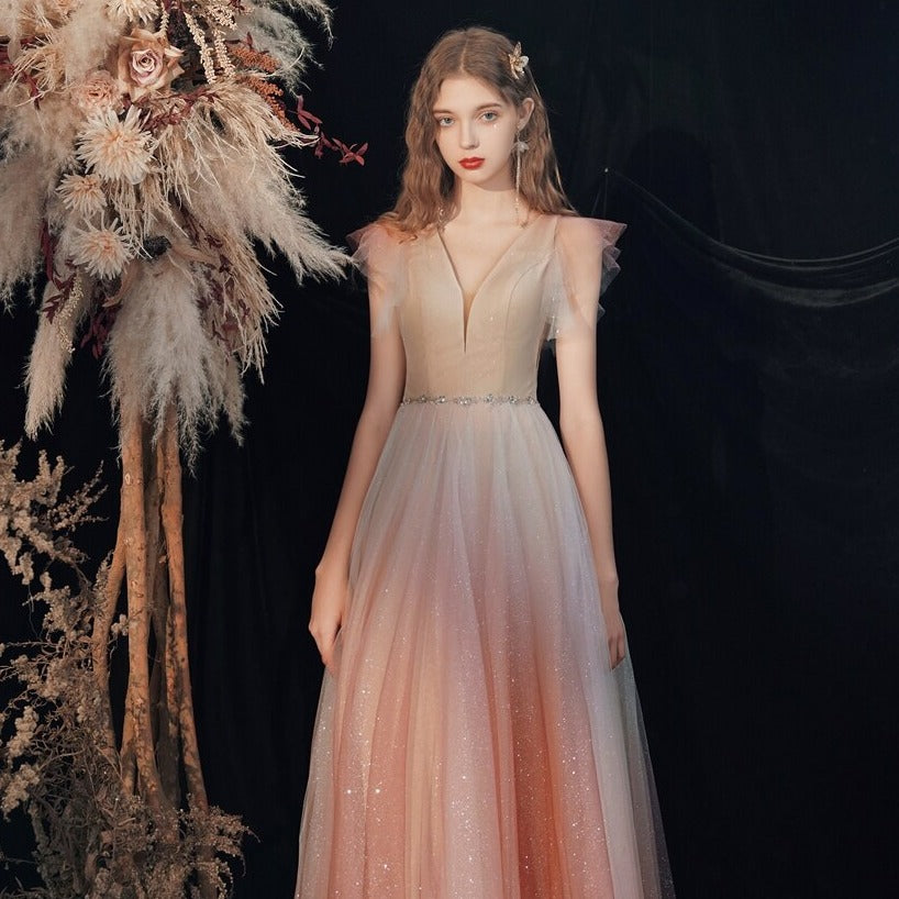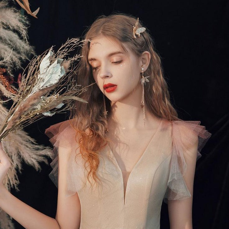 This shimmering mermaid gown in dusty pink will have you feeling like a true mermaid! With its sparkling details, this robe adds a touch of whimsy to any event. You'll be the talk of the town in this unique and playful piece.