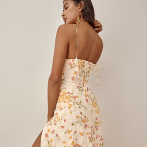 Indulge in luxury with the slim-fitting Robe Yolanda. The adjustable tie straps allow for a personalized fit, while the side slit adds a touch of sophistication. This midi dress offers both style and comfort, making it a must-have in your wardrobe. Please note, this dress runs slightly small.