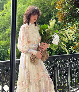 Indulge in luxury with the Silk Maxi Dress, a standout item of the season. Crafted in premium silk-linen, this dress features a classic button-through design, flattering mandarin collar, and self-fabricated belt for a chic silhouette. With wide blouson sleeves and a maxi length skirt, this dress exudes elegance and sophistication.