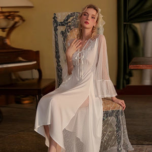Cuddle up into a dreamy night of beauty and bliss with Slip Heaven! Sparkling with delicate lace, this white princess nightgown is perfect for an extra special night. Combining luxury and comfort, Slip Heaven is the ultimate sleepwear destination!
