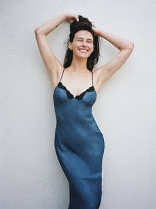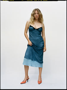 Introducing the Karlie Dress - your go-to for chic summer style! Made of double layered printed indigo denim, this zipless dress features delicate lace detailing and an ankle-grazing length. Whether you're lounging on the Amalfi coast or strolling the streets of New York, this dress paired with Mulholland glasses is sure to turn heads.