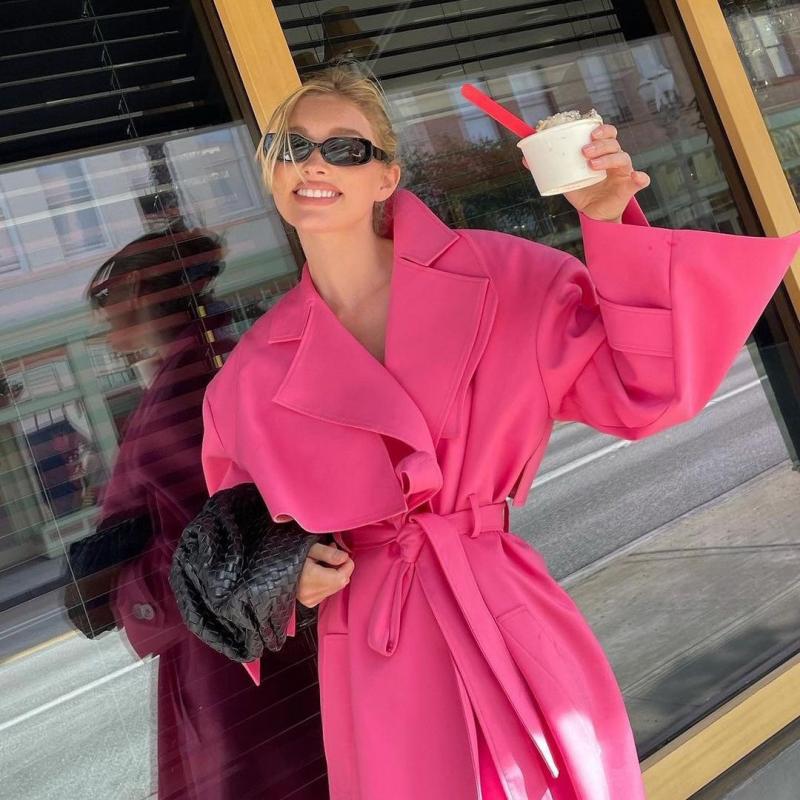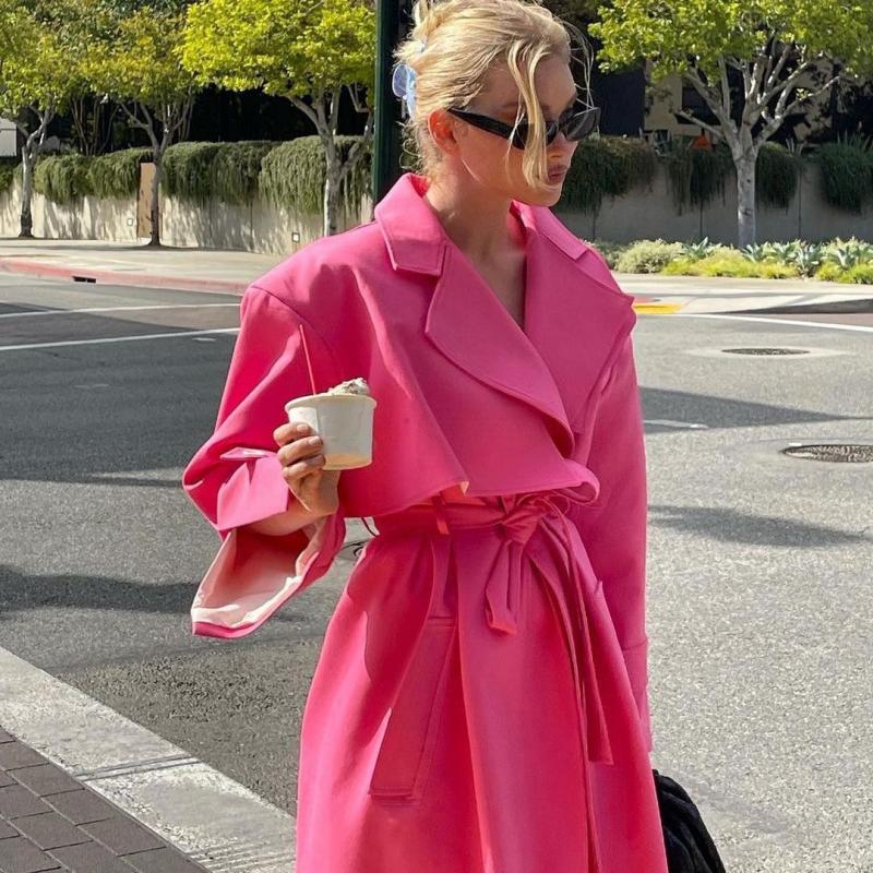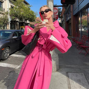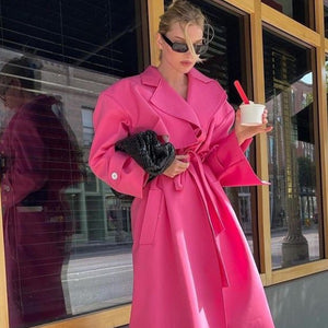 Introducing the Alina Trench Coat, expertly designed in a stunning pink color. Featuring an oversized fit and a belted waist, this trench coat is perfect for both fashion and function. With its timeless design, you'll stay stylish and warm in any weather.