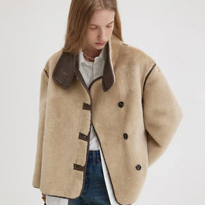 This faux lamb wool jacket will keep you warm and stylish during the winter months. With a stand-up collar and loose fit, this jacket is perfect for layering over any outfit. The suede material adds a touch of luxury to your wardrobe. Stay cozy in style with the Veste Melina!