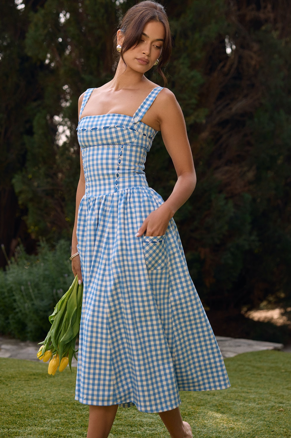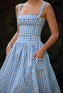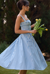 Expertly crafted from luxurious airy viscose, the Vivien Midi Dress is the must-have dress of the season. The pretty gingham pattern and delicate contrast ribbon detailing add a feminine touch, while the fitted bodice and pockets provide comfort and style. Dress it up for any occasion.