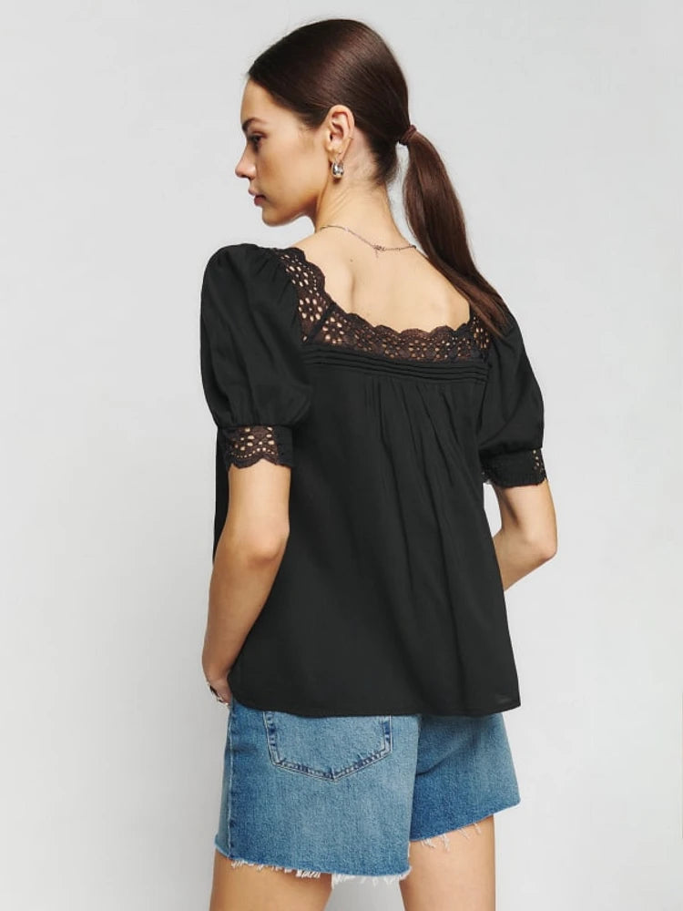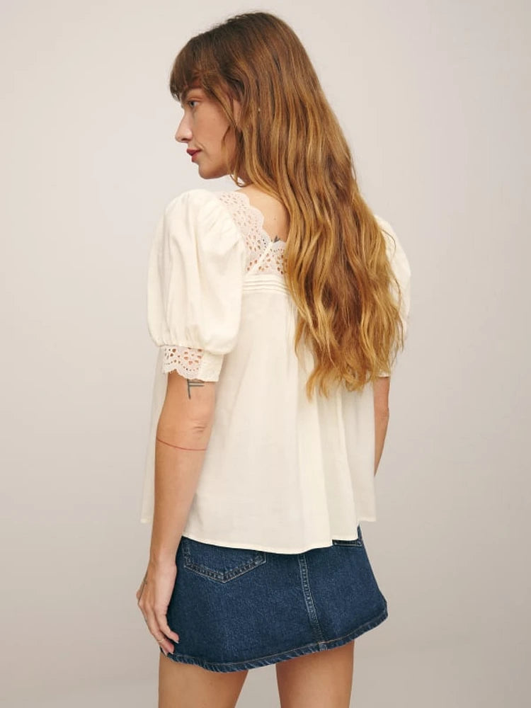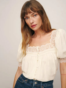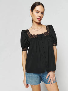 Introducing the Wanda Top, the perfect blend of style and comfort. This relaxed fitting top features a square neck and short puff sleeves for a unique and trendy look. Don't miss out on adding this versatile piece to your wardrobe. Shop now.